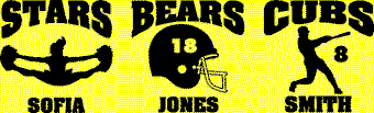 Each unique cut-to shape graphic design is approximately 6.0" x 6.0" and is personalized with the team or mascot name above and the individuals name below the graphic.