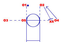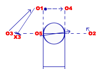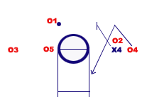 The basic pattern continues in figure 2-4. O1 must follow the rule of not standing still and exchanges with O3. O2 moves forward to meet a possible pass from O4 while O5 crosses over in order to follow the rule of staying even with the ball. These movements are used primarily to make the defense have to constantly adjust to the changing of the location of the ball. This also helps to free the forwards for a penetrating pass to start the offense